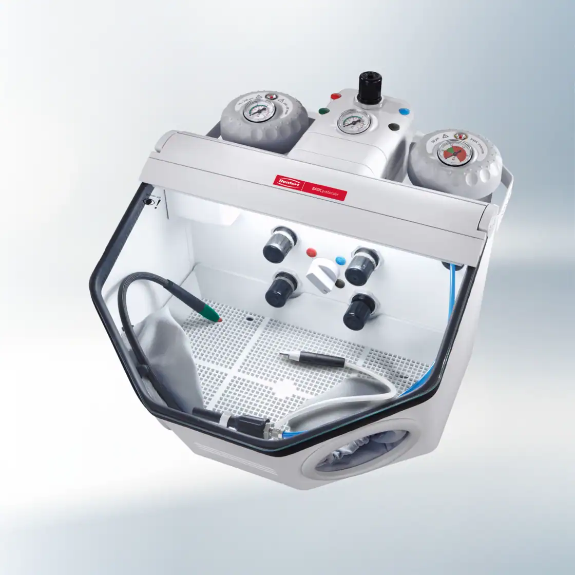 - Flujo seguro del medio abrasivo gracias a la cámara de mezcla Venturi de Renfert.